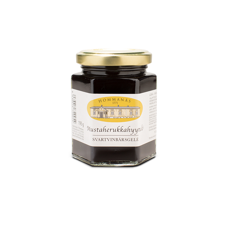 Täyteläisen mustaherukkainen hyytelö sopii monenlaisten liha- ja kasvisruokien makupariksi.